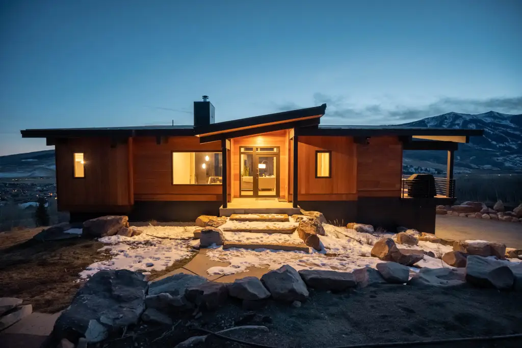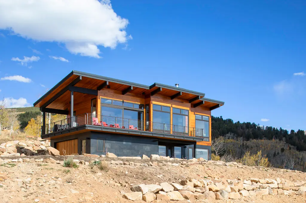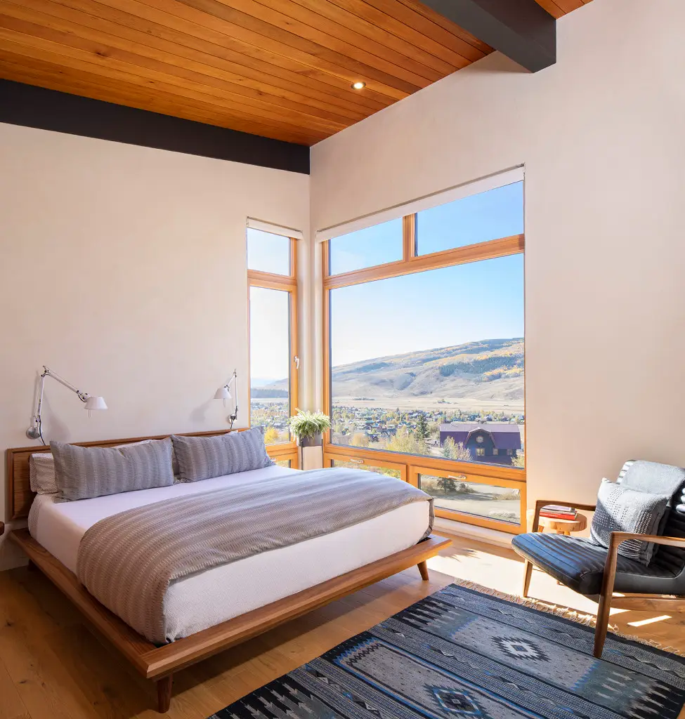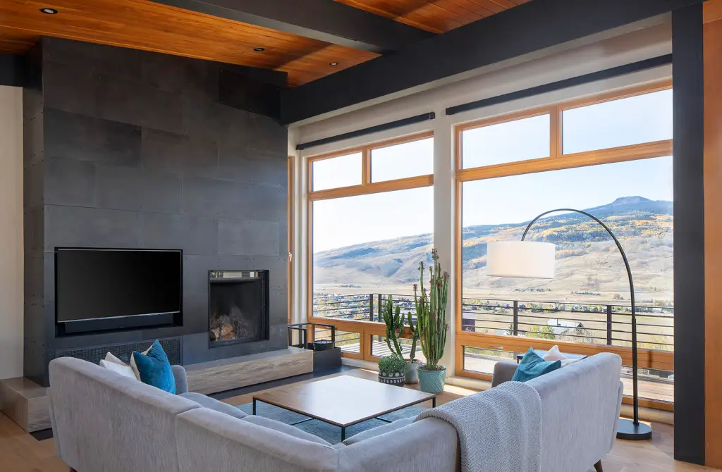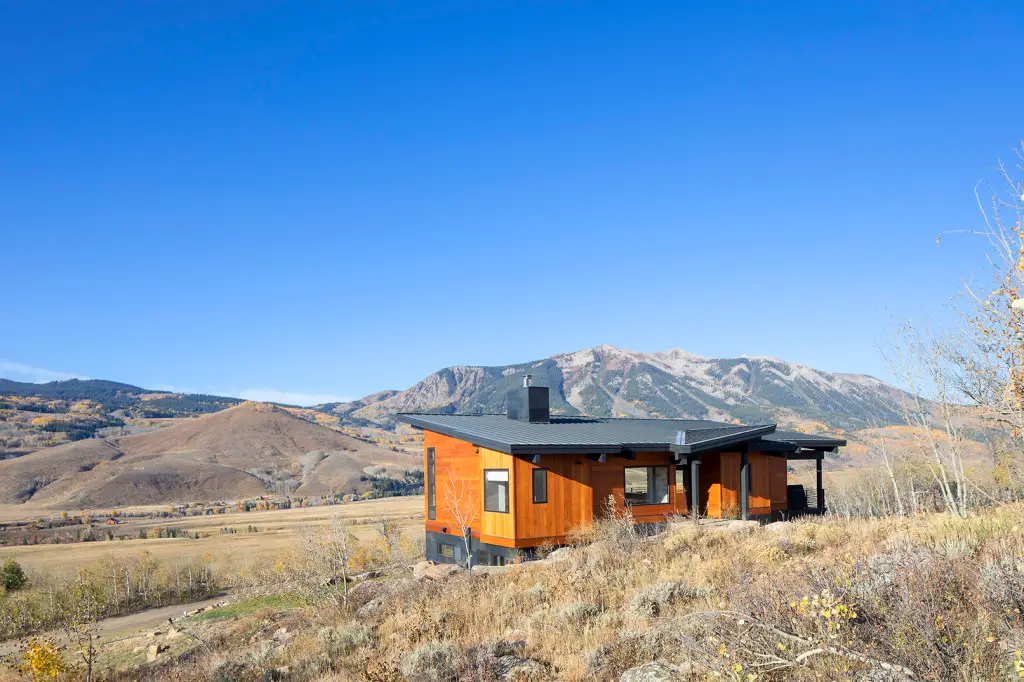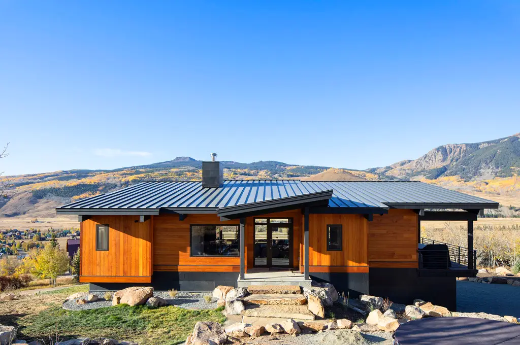 This contemporary home built into the hillside takes full advantage of southern exposure and the incredible views of Whetstone Mountain and Paradise Divide. This Dan Murphy designed home features an open floor plan with large Kneer-Sud windows to create a very expansive feeling and showcase the stunning mountains.  The mountain-modern interior, with healthy, non-toxic finishes, gives it a clean feel without losing warmth and coziness.  The sizable outdoor decks allow for outdoor and indoor living throughout the year because of its southern orientation.